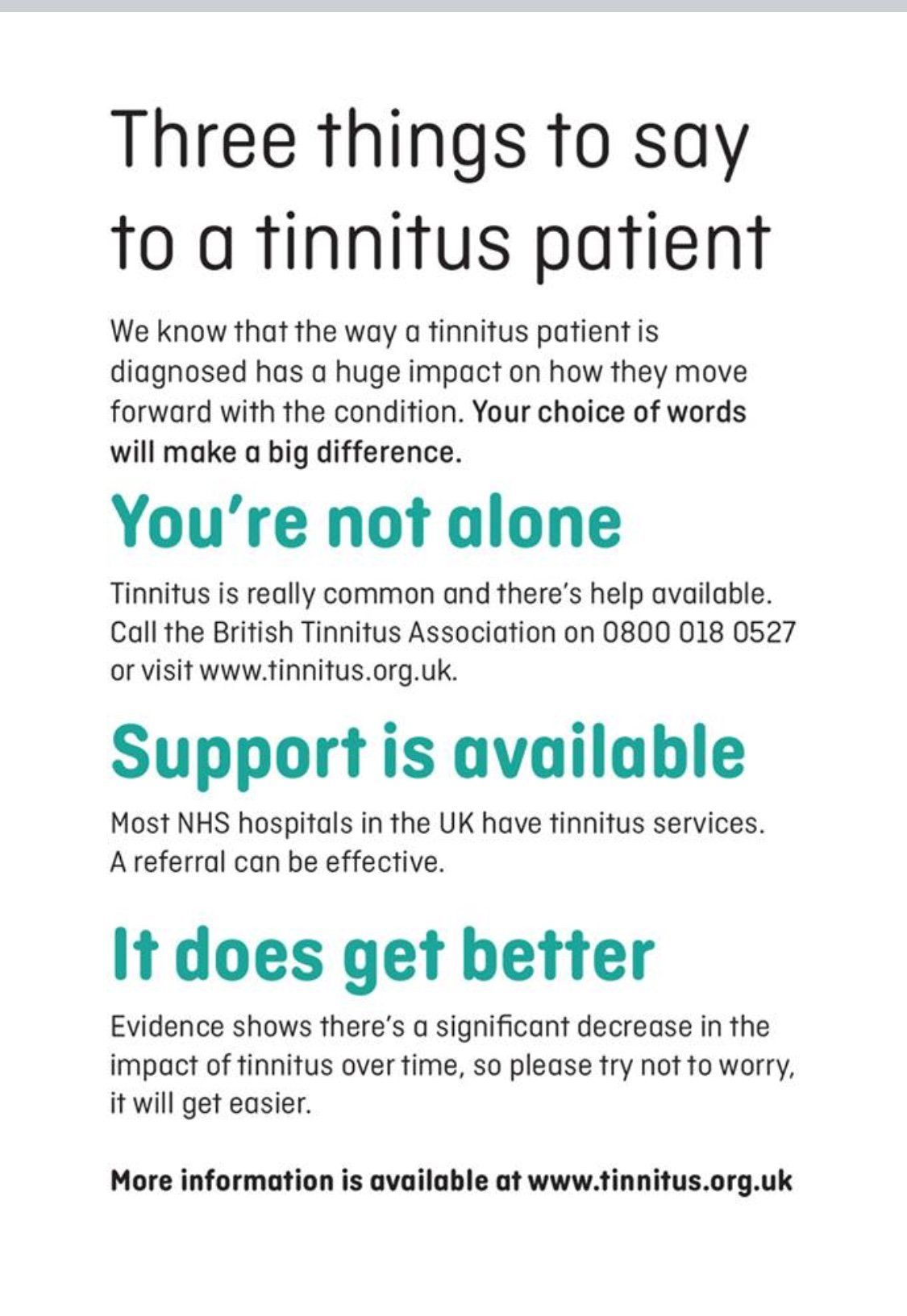 Tinnitus.uk (nation wide) help line Mon-Fri 9am - 5pm